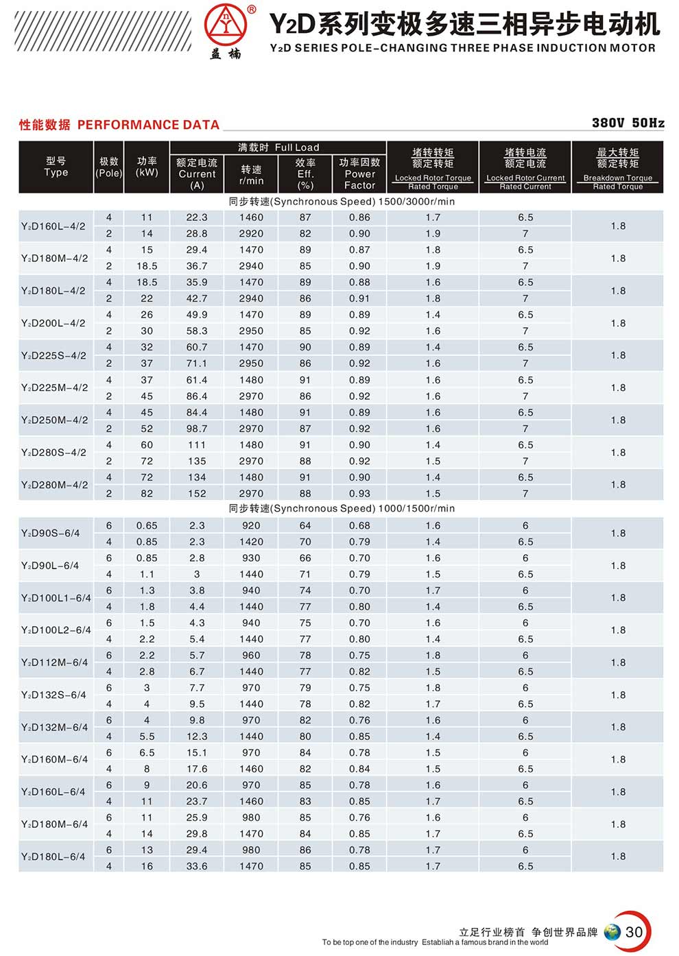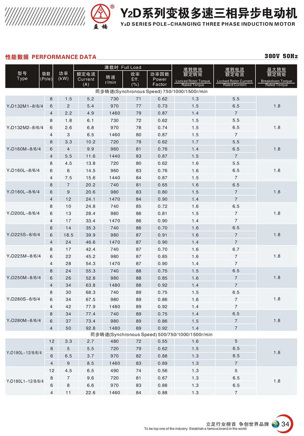 Y₂D系列变级多速三相异步电动机 产品详情下载