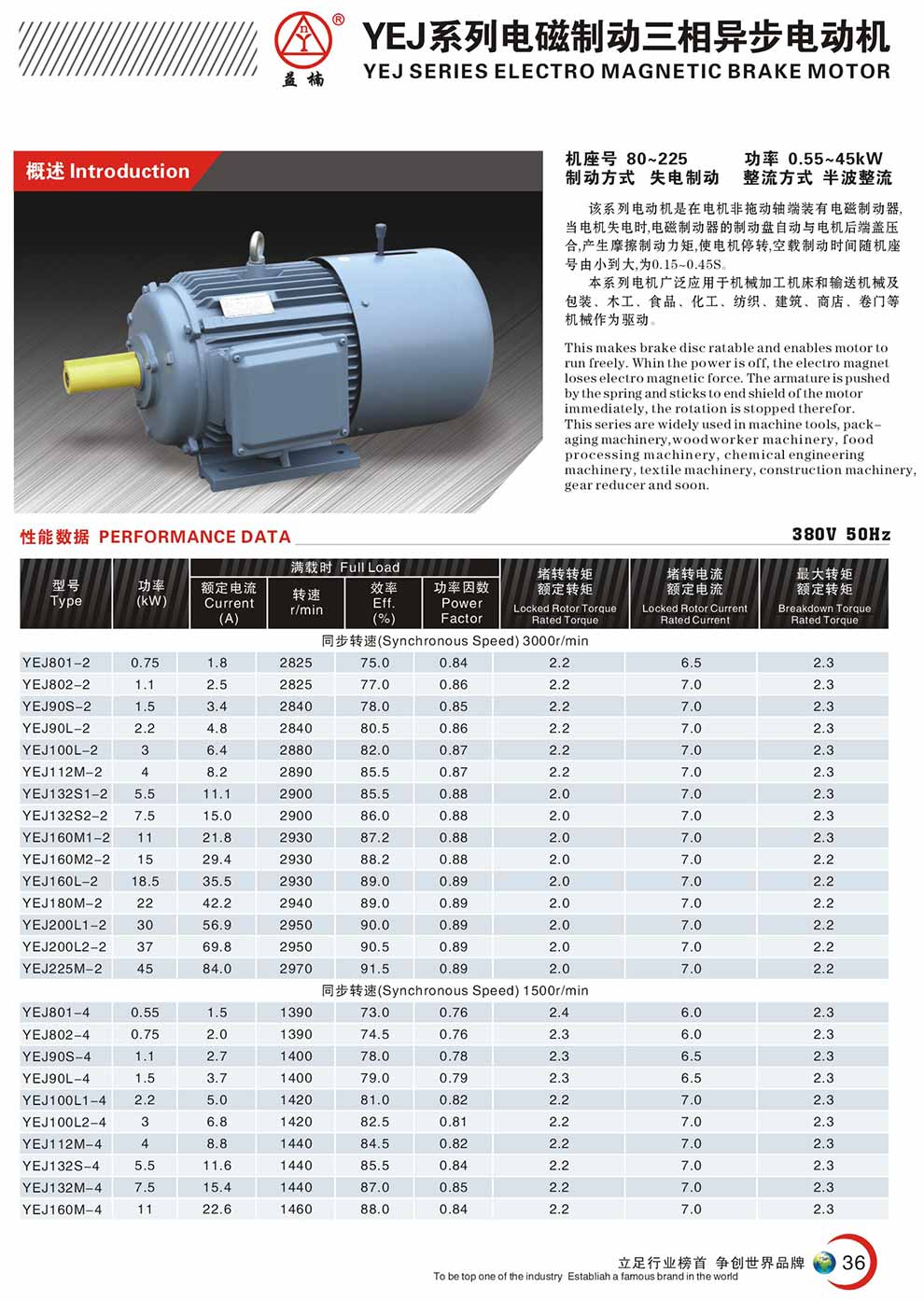 YEJ系列电磁制动三相异步电动机 产品详情下载