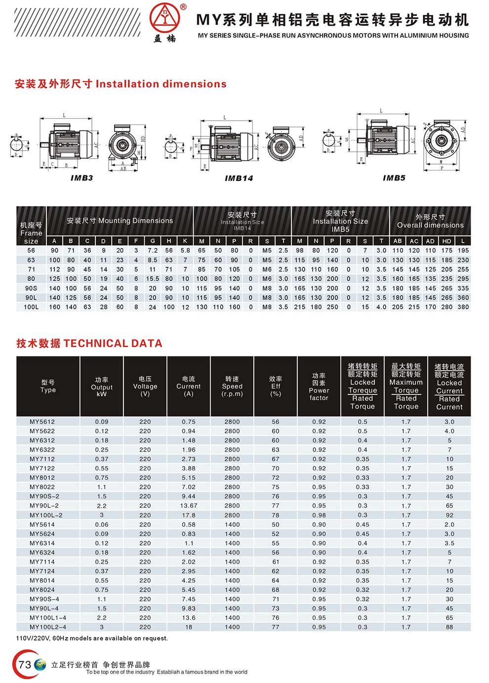 MY系列单相铝壳电容运转异步电动机 产品详情下载